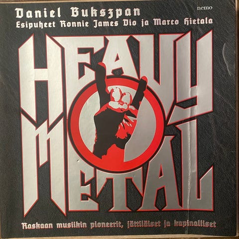 Heavy metal – Raskaan musiikin pioneerit, jättiläiset ja kapinalliset esittelee tärkeimmät hevibändit AC/DC:stä Warrantiin sekä tarjoaa paljon kiinnostavaa tietoa raskaan musiikin historiasta. Suurikokoisen kirjan upeat valokuvat ja vetävä teksti eivät pelkästään kerro bändeistä ja niiden diskografioista vaan luovat laajempaa kuvaa musiikkityylistä, joka vaikutti niin populaarikulttuuriin, muotiin kuin asenteisiinkin. Kirjan esipuheen on kirjoittanut heavylegenda Ronnie James Dio, jonka mukaan kirja on “perusteellisin ja informatiivisin metalliteos jonka olen koskaan lukenut”.