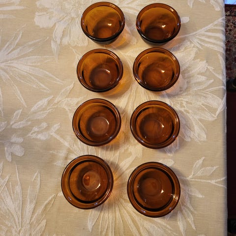 Neljä vihreää lasista jälkiruoka-astiaa. Vain nouto koska särkyvää.