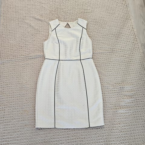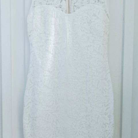 Kaunis, kerran käytetty mekko. Helma takaa pitempi, nauhat sidottavissa eteen tai taakse. Materiaali venyy. Kunto oikein hyvä, en löytänyt mitään moitteita.