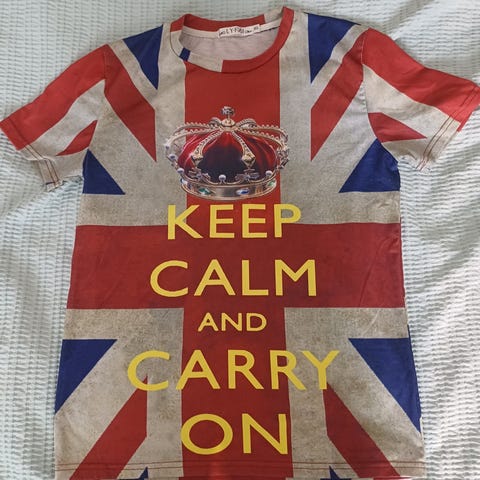 Juuttikassi Ison Britannian lippu ja kruunu painatuksella.