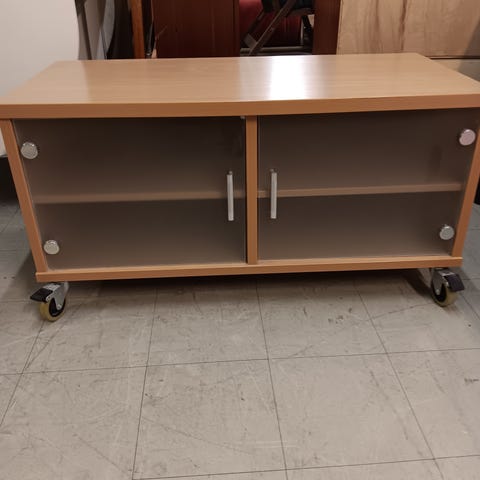 Vaalea tv-taso pyörillä.