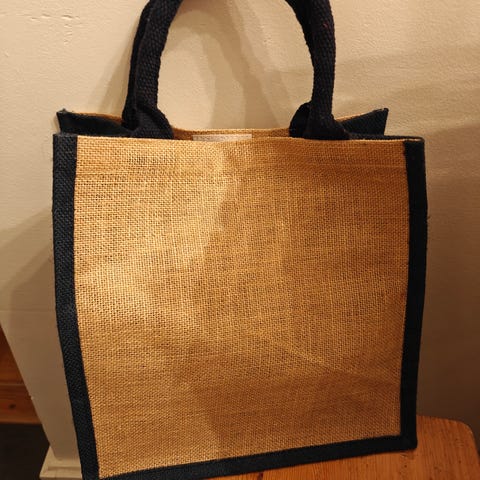 Juutti-kankaan tyylinen kassi suljettavilla naruilla. On siis enemmän puuvilla kangasta.