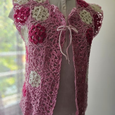 Virkattu kukkakuvioinen jakku/pusero M-L