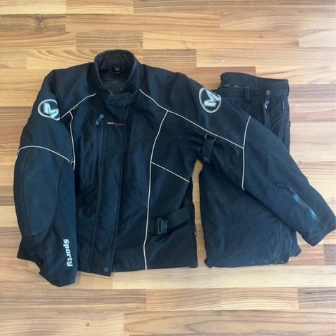 Siisti naisten ajopuku. Takin koko XS ja housujen koko S .