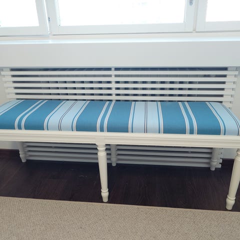 Hienokuntoinen Vanha Rahi/taburetti, leveys /syvyys 65/36cm, korkeus/istuinkorkeus 59/46cm.