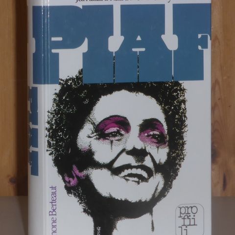 Kirjoittanut Simone Berteaut. Kovakantinen elämäkerta Edith Piafista. Kansipaperi mukana.