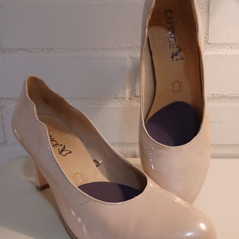 Kesä nahkakengät. Korkokengät vöriltään ruske ja beige. Koko 33-34. Korko 9cm.