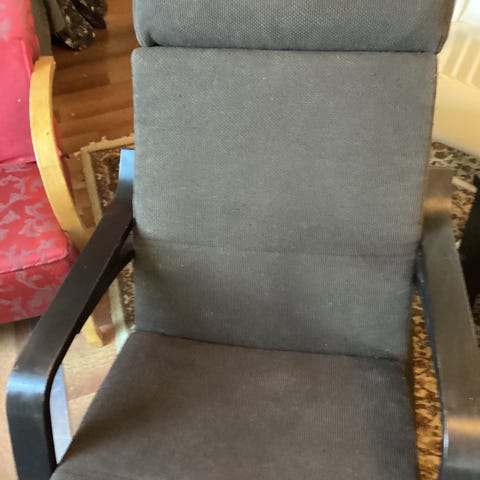 Ikea keinutuolirunko. Käsinojat kannattaa hioa, ne ovat tummuneet. Lakkaus ja värjäys käsinojille sopii muös niin halutessaan. Halvimmillaan uuden päällisen patjan saa ikeasta 60€