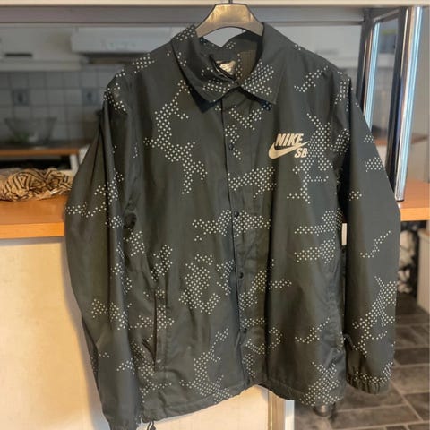 Nike Takki mustassa värissä, koko L. Kevyt ja tuulenpitävä ulkotakki, sopii miehille. Materiaali on ohut ja suojaa sääolosuhteilta.