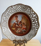 Vintage Schumann posliinilautanen jossa on Murillo Bartolomén kuuluisa maalaus "Noppapeli".