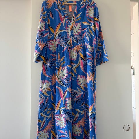 Kaunis pellavamekko, kuin uusi,ollut päällä yhden kerran. Koko on 36, melko reilu ,sopii kyllä 38 kokoiselle. 55% pellavaa,45 % viskoosia. Nouto tai toridiili/postitus.