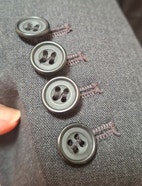 Lontoon Hackett-myymälästä ostettu tummanharmaa kaksiosainen puku 100% villaa. Brittien koko 40L, siis pidemmälle henkilölle. Housujen sisäsauma 86 cm. Säädettävä vyötärö, maksimileveys tasona 42 cm. Jakun pituus olalta 81 cm.