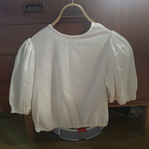 Puku on täydellisessä kunnossa, siinä ei ole ollenkaan tahroja tms. Koko suunnilleen 128, pelkkä arvio.