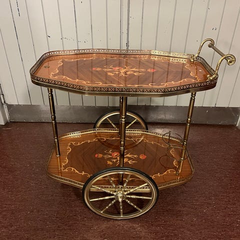 Vintage tarjoilupöytä lasikannella sisältää kuljetuksen
