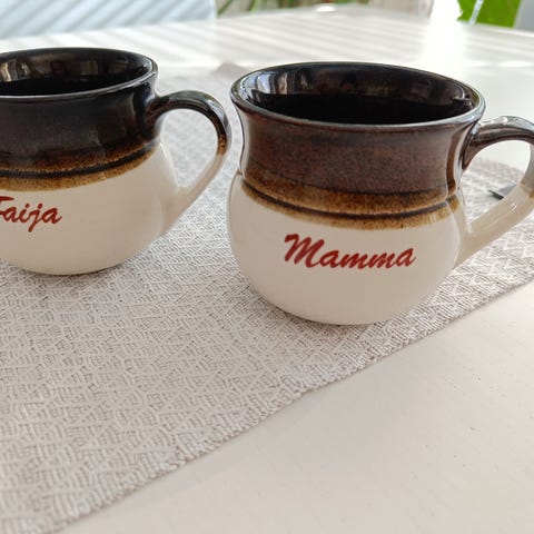 Kermansavi äiti ja isä-mukit, ehyet.