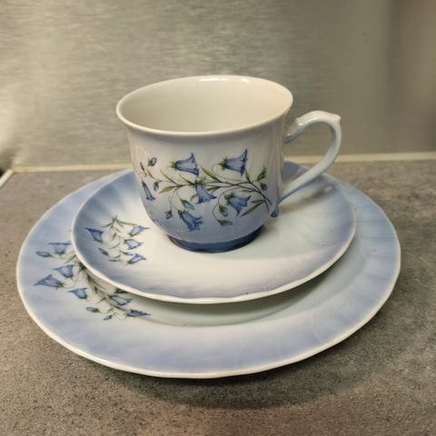 Myydään Christineholm astioita. Kaksi leipälautasta (halkaisija 20 cm), kaksi kahvikuppisettiä ja viisi teekuppia. Ei ole koskaan käytetty.