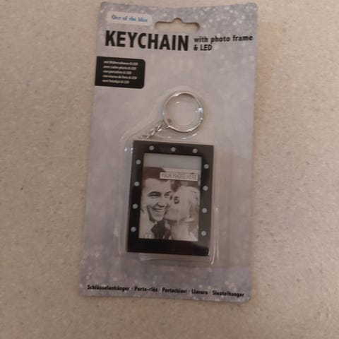 Raamattu avaimenperä, kannessa teksti Holy Bible. Kannen päällys hopeanvärinen. Kirjan voi avata ja sisällä olevilla sivuilla on niin pientä tekstiä, ettei sitä näe lukea.