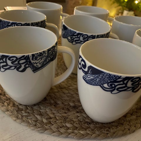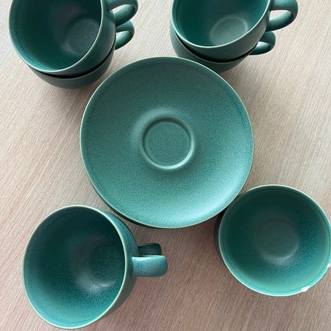 Tummansiniset Arabian 24h malliston kahvikupit ja asetit. Kumpaakin 8kpl. Käyttämättömät.