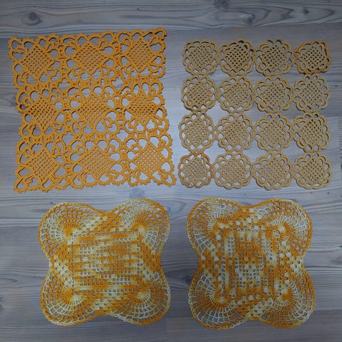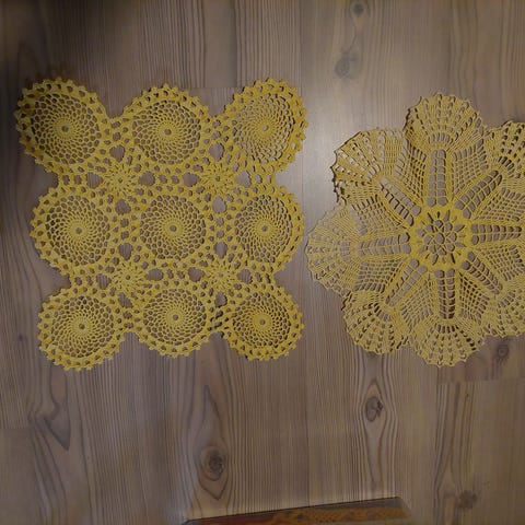 Myydään keltainen pitsiliina. Halkaisija 30cm.