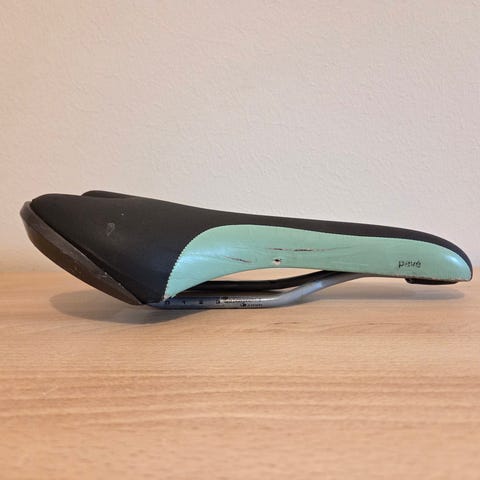 Käytetty, mutta erittäin hyväkuntoinen satula. Löysin omaan takamukseen paremmin sopiva. Runko ja kiskot ovat hiilikuitua ja on siksi erittäin kevyt, vain hieman yli 150 g. Kuvassa kiskot (soikeat) teipattu hiilikuitumateriaalin suojaamiseksi, ovat täysin ehjät. Reunoissa hyvin lievää kulumaa, mikä näkyy kuvassa. Myyn, koska löysin omalle takapuolelle hieman paremmin sopivan. Vastaavan uuden hinta noin 150-200 Eur.