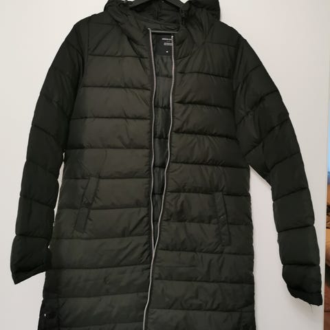 Musta, pitkä toppatakki