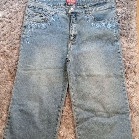 Tumman siniset Farkku Caprit, koko XL, edessä vetoketju ja nappi, taskut+pikku nappi tasku, takana nappi taskut, vyön lenkit, vyötärön mitta 44cm edestä mitta, puntin mitta haaroista puntin suuhun 51cm, mitta sivusta vyötäröltä puntin suuhun 76cm, ehjät
