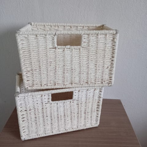 Kaksi kannellista säilytyskoria. Hinta kummastakin yhteensä.