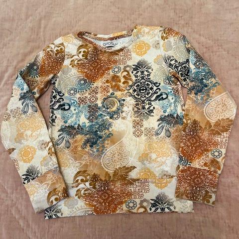 Gugguun t-paita frillamekko koossa 146. Väri varmasti alkuperäisestä tasaisesti haalistunut.