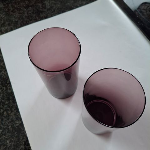 Kuva 2 ja 3. 6 kpl virheettömiä juomalaseja,1.5 dl. Korkeus 8.5 cm. Suun halkaisija 6 cm. Valmistus 1957-1970, 7 eur / kpl