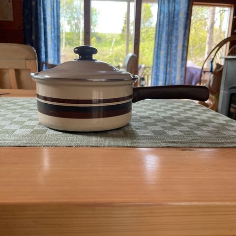 Arabia Wärtsilä Wihtori kattila käytetyssä kunnossa, tummentumaa sisällä pohjassa ja ulkoreunoissa alhaalla jälkiä kaasuliedellä käytöstä. Hyvä toimintakuntoinen 4 l kattila.