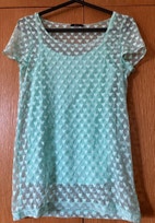 Kesäpaita pienillä hihoilla. Koko XS. Väri vaaleanvihreä / minttu. Alustoppi joustaa, päälliskangas joustaa vähän. Merkki Mochito. Materiaali päällinen 100 % polyesteri, alustoppi 100 % viskoosi. Uusi / käyttämätön.