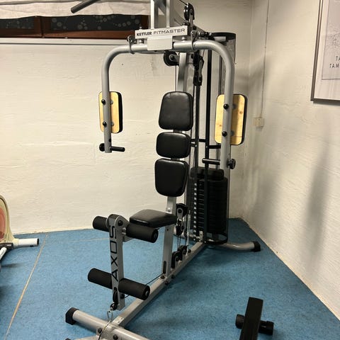 Hyväkuntoinen, monipuolinen Kettler- voimailulaite. Yli 20 eri liikettä mahdollista, kuten rintalihakset, ylätalja, alatalja, jalkaprässi (erillinen lisäosa, ei näy kuvassa).
