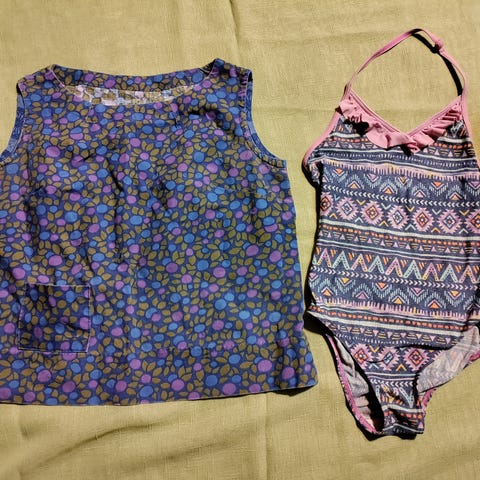 1990- luvun kukkatunika sinivalkokelta 158-164, trikoota, edessä napit, reilu koko