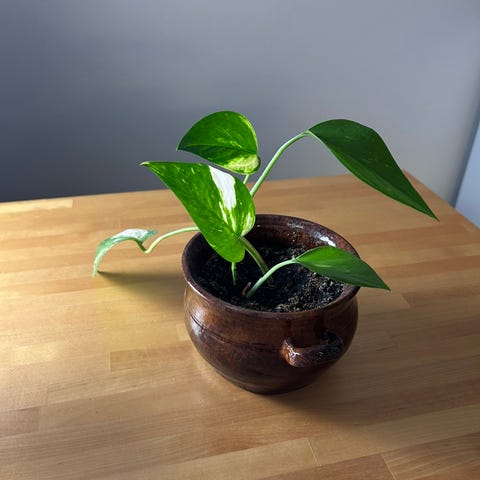 Kultaköynnös Marble Queen pistokas. Tekee erittäin vaaleaa lehteä.