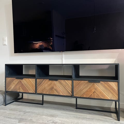 Tason takana on reijät mistä saa johtoja läpi ujutettua, niin saat kaijuttimia tjms kaapin sisälle.