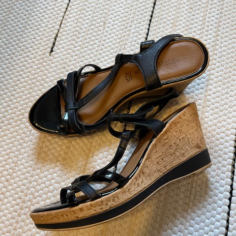 Käyttämättömät kiilakorkokengät. Koko 40, väri musta/kulta.