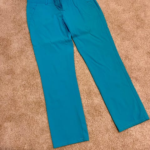 Naisten mustat uudet golfhousut, koko 44. Liukaspintainen materiaali, vettä hylkivät. Kuvissa mitat, materiaali ei jousta. Ovh 79e.