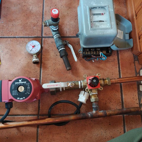Remontissa yli jääneitä LVI-laitteita ja 3-vaihe energiamittari. VAIN NOUTO