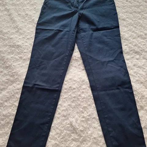 Vajaamittaiset, leveälahkeiset, paksuhkoa twill-kangasta, 100% puuvillaa.