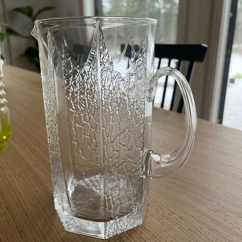 Hieno Timo Sarpanevan suunnittelema karahvi, joka ollut itsellä koristeena. Karahvin korkki jäänyt jumiin pullon kaulaan ja tämän irroitus jää mahdolliselle ostajalle.
