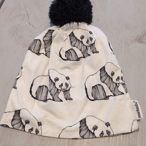 Myydään hyväkuntoinen, mustavalkoinen Metsola Panda puuvillaharso. Koko n. 69x69 cm.
