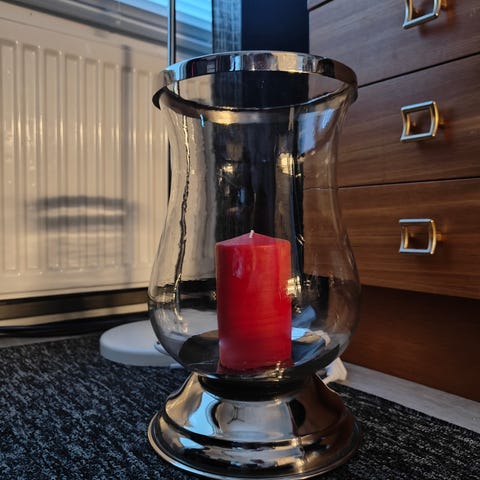 Hurrikaani Kynttilä /Maljakko kukille tai kynttilälle. Teksti Happiness is homemade .Korkeus 27cm.8€.Haku tai kulkeutuu omien menojen mukaan saarijärvi-jyväskylä akselilla ja mmm