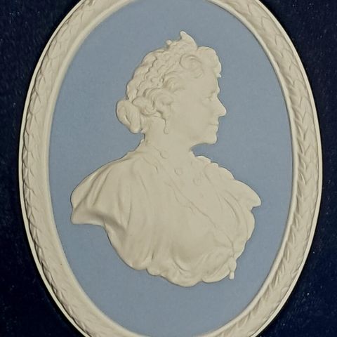 Wedgwood Jasper-posliini, Martha Washington. Minitaulu /medaljonki / laatta. Mitat 15,5cm x 12,5cm. Tämä laatta kuulluu Wedgwoodiin 225th Anniversary -kokoelmaan.