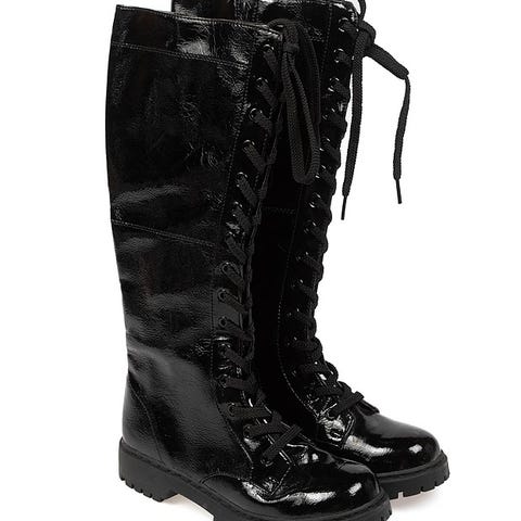 Käyttämättömät valkoiset huikeat lakerisaappaat keinonahkaa.