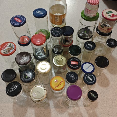 Myydään 13 kappaletta lasipurkkeja joissa kannet. Nyt kertynyt enemmän