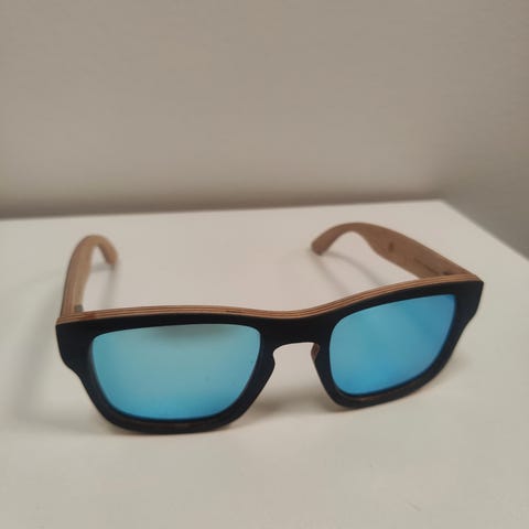 Uudenveroiset Shadeshares-aurinkolasit X Tavastia. Lasien malli ”Chui”, jota ei enää ole saatavilla. Kehysten materiaali suomalaista sertifioitua koivua. Polarisoidut linssit. Aurinkolasien mukana tulee korkista valmistettu kotelo.