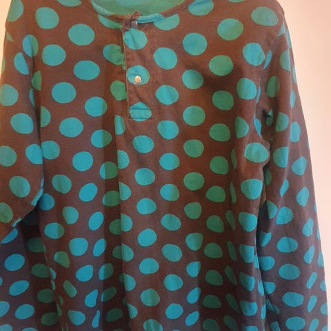 Maripaidan pituus olalta helmaan 52cm, kainalo-kainalo 38cm. Kokonumerosta en saa selvää. Laskostetussa paidassa oikeampi sävy