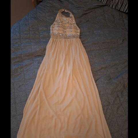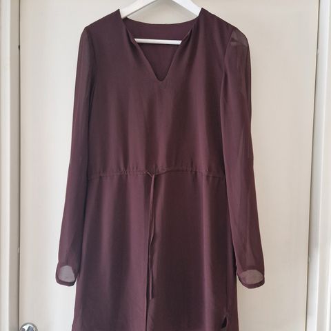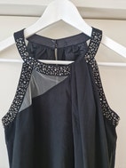 Musta sifonkimekko paljeteilla. Koko 36. Yksi kiristyslanka helmassa. Ostettu Haloselta, mutta tuotemerkistä ei muistikuvaa.