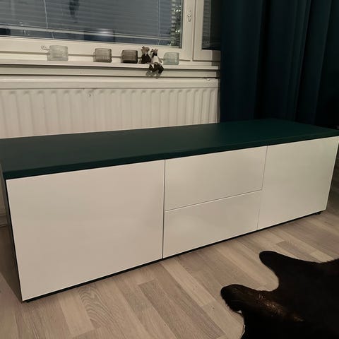 Jyskin Jernved -mallinen senkki. Siistissä kunnossa varusteltuna pienin lisävarustein: