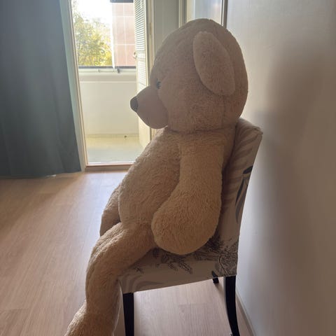 Todella pehmeä ja iso nalle, melkein lapsen kokoinen. Täydellinen sisustukseen tai lahjaksi lapselle. Siisti ja ehjä, käytetty vain vähän.